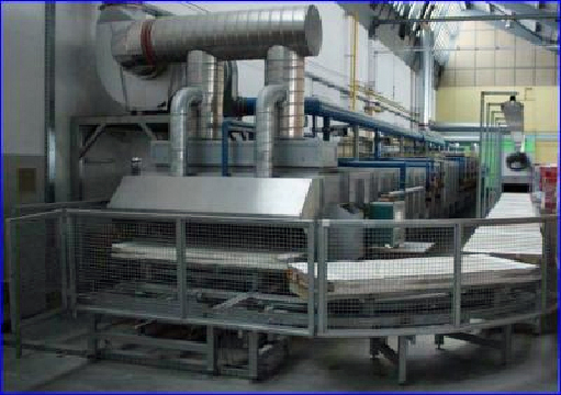 | Beschreibung: | Ofengehäuse Gesamtlänge: 24 m Länge Aufheiz- und Brennzone: 16 m Länge Kühlzone: 8 m Länge externer Kühlkanal: 8 m Breite: 2,3 m Höhe: 1,9 m Gesamtanlage Länge mit Querschub: 28 m Breite mit Rücklaufbahn: 4,5 m Brenntische Breite: 1,8 m Tiefe: 0,8 m Anzahl Gesamt: 45 Stück Anzahl im Ofen: 30 Stück Nutzbreite: 1,6 m Nutztiefe: 0,8 m Nutzhöhe: 0,26 m Brenntemperatur: 800 – 1300 °C Beheizung: Erdgas Nutzfläche Brenntisch: 1,28 m² Höhe Setzfläche von Fußboden: 0,85 m² Isolierung Isolierstärke Brennzone: 0,35 m (Decke) Isoliermaterial: hochverdichtete Streifenmodule Klassifikationstemperatur: 1430/1600 °C Verdichtung: 260 kg/m³ |